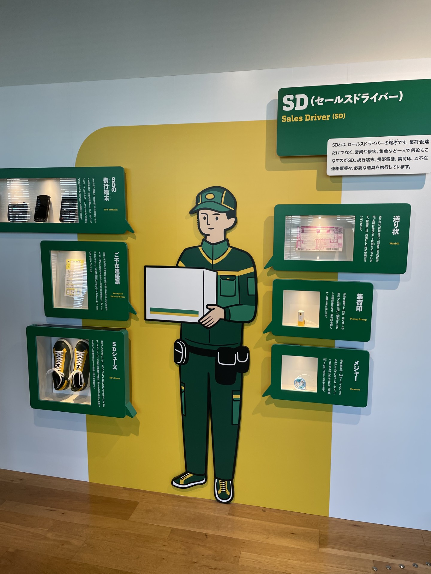 創業の地である銀座の移り変わりとともに、「大和便」の誕生や、今や世界中で愛されるネコマークの秘話に触れることができます。さらには、画期的なビジネスモデルである「宅急便」が、数々の困難を乗り越えて社会に定着していく軌跡が詳細に展示されていました。今では当たり前のように頼んだ翌日に荷物が届くこの仕組みが、決して簡単なものではなく、多くの人々の努力と工夫の上に成り立っていることを実感します。
