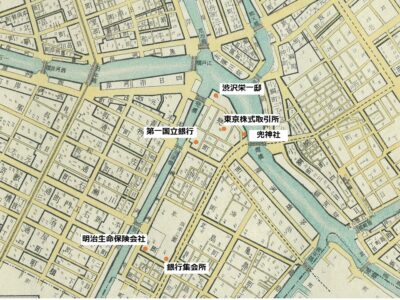 渋沢栄一は、次々に日本の経済を支える会社や団体を設立しますが、その設立した会社、団体や、多くの関わりがある会社の事業所が兜町一帯に集まり始めました。