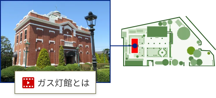 ガス灯館は、明治42年(1909)に文京区本郷に建てられた東京ガスの出張所の建物を移設復元しています。